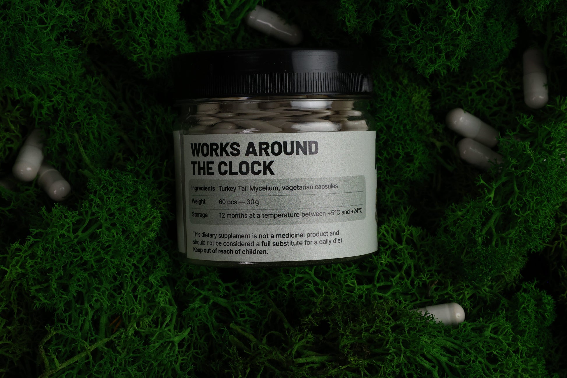 🍄 Ingredients: Turkey Tail Mycelium (Trametes versicolor), vegetarian capsules.
